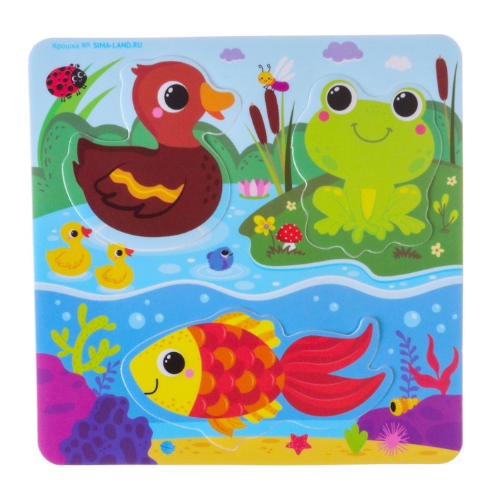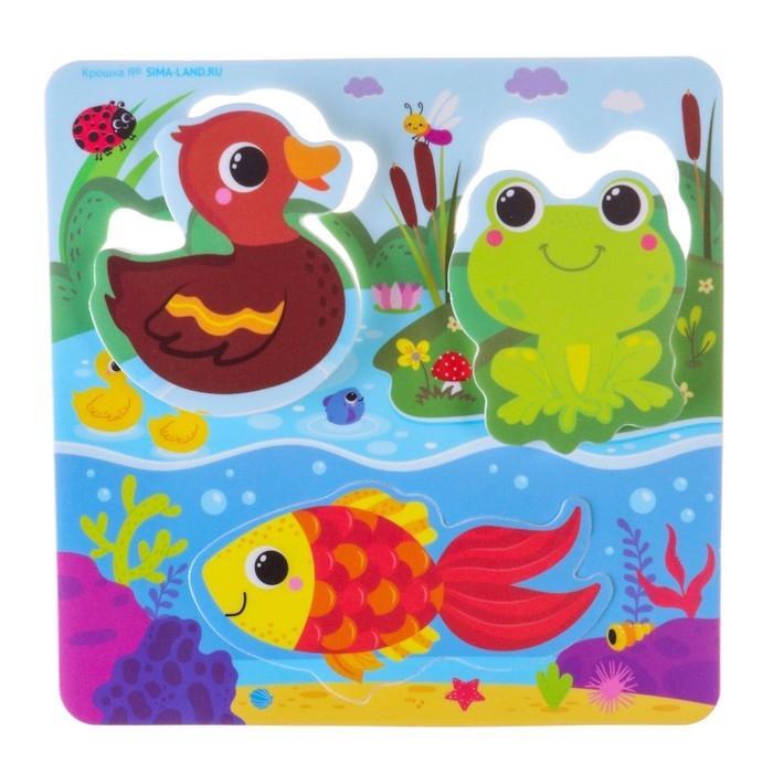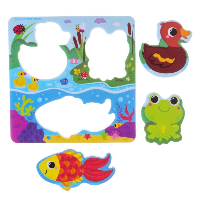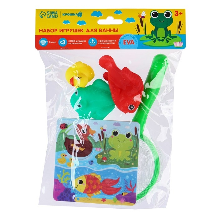 Набор игрушек для ванны "На пруду" + сачок + 3 пвх игрушки, Крошка Я