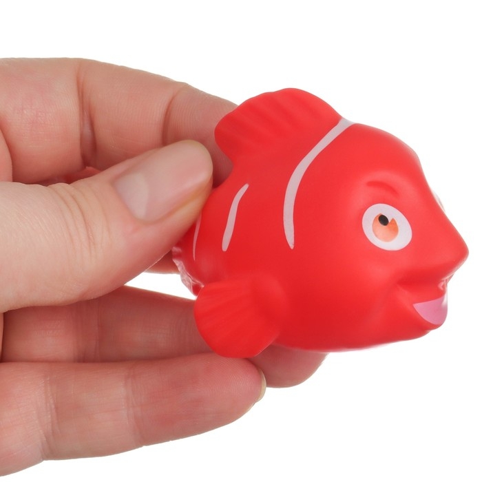 Забавные игрушки из мягкого материала не тонут в воде и при намокании приклеиваются к кафелю или ванне.