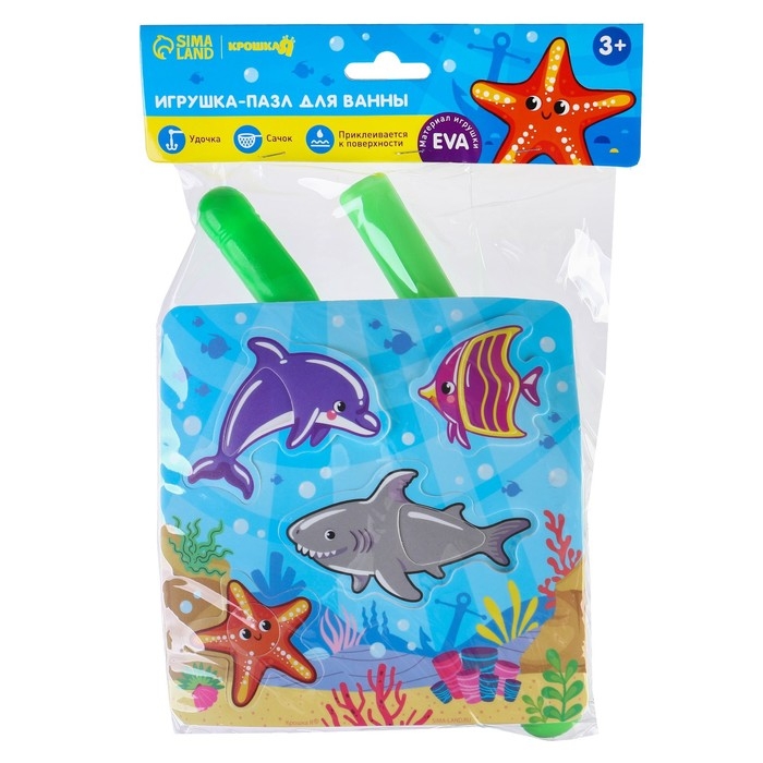 Игрушка пазл для ванны "Морской мир" с сачком + удочка, Крошка Я