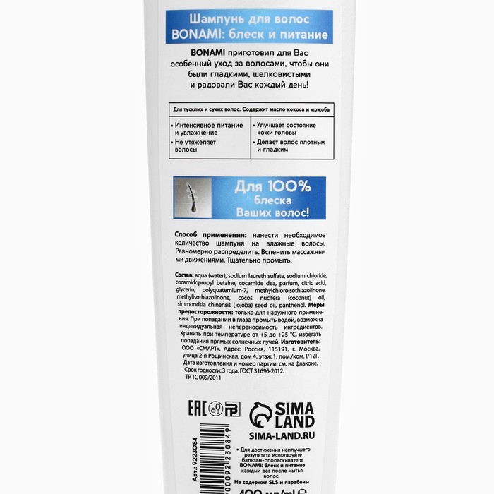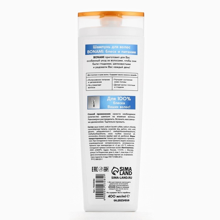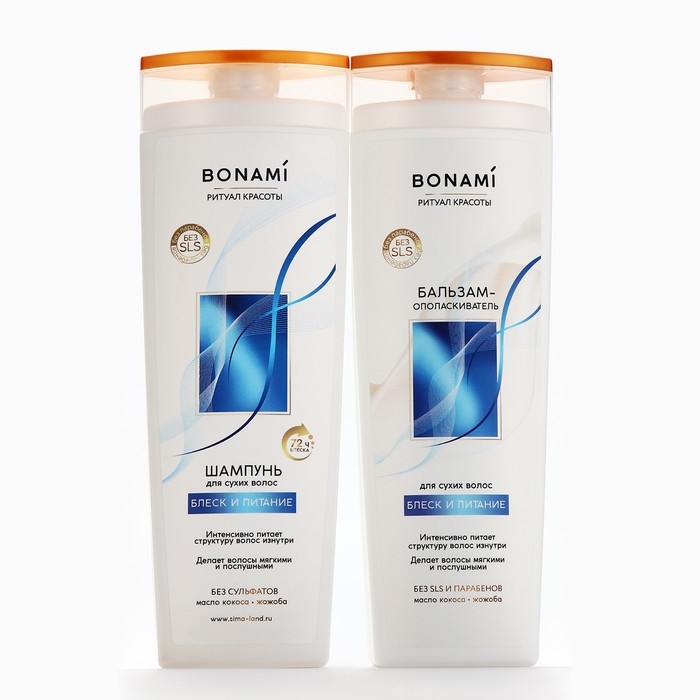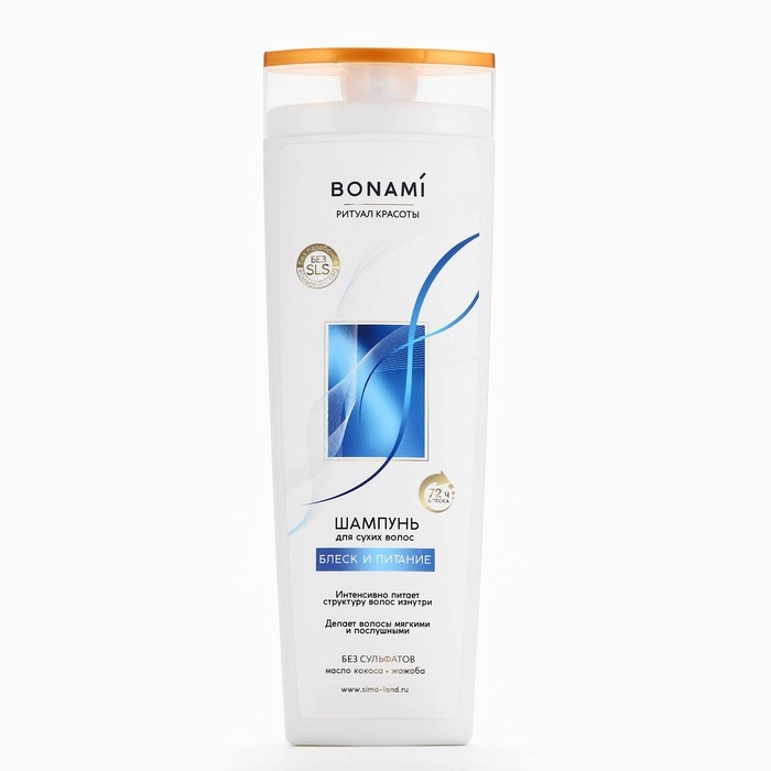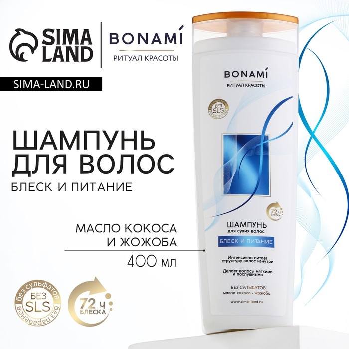 Шампунь для сухих волос с маслом кокоса и жожоба, блеск и питание, 400 мл, BONAMI