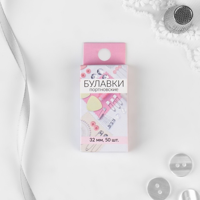 Булавки портновские, Т-образные, 32 мм, 50 шт, цвет серебряный