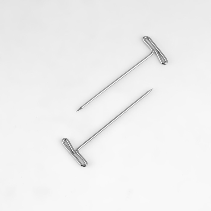 Металлические булавки с широкой шляпкой в форме буквы Т предназначены для пошива верхней одежды и работе с пальтовыми или плотными джинсовыми тканями. Благодаря необычной форме булавки не гнутся и могут выдерживать большой вес тяжёлой ткани,