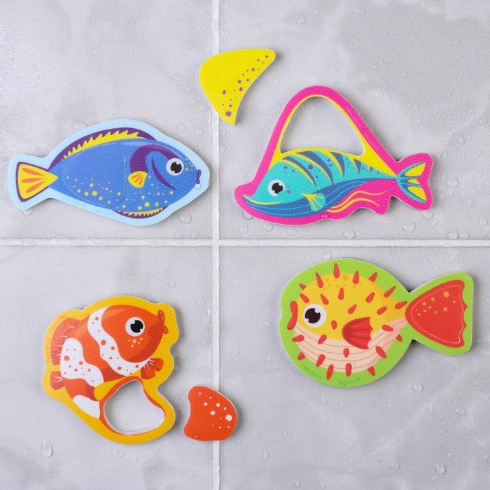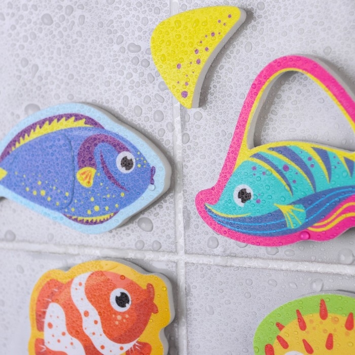 Набор игрушек для ванны "Морские обитатели" 8 штук, с сеткой + удочка, Крошка Я