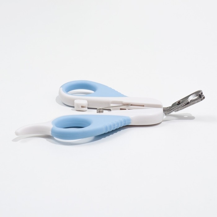 Ножницы-когтерезы "Пижон" Premium изогнутые, с упором для пальца, бело-голубые