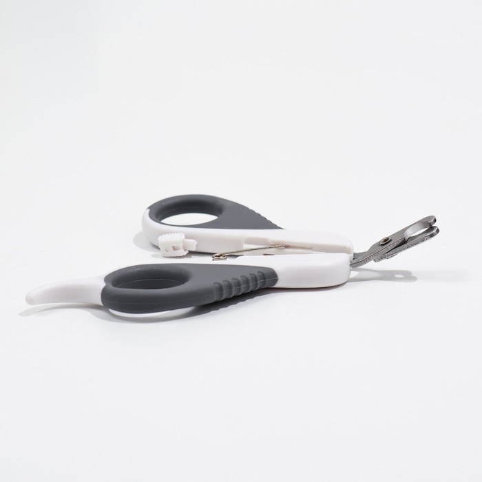 Ножницы-когтерезы "Пижон" Premium изогнутые, с упором для пальца, бело-серые