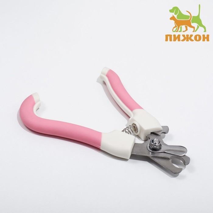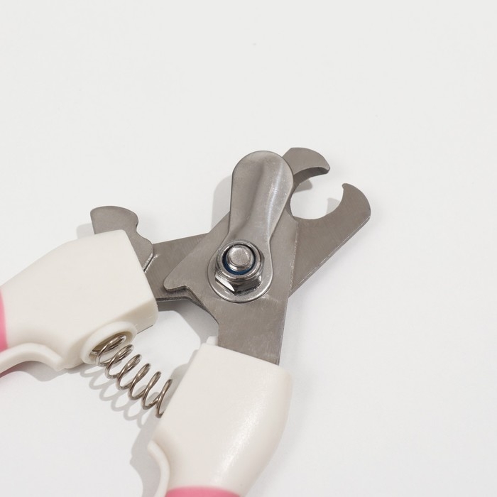 Ножницы-когтерезы с мягкими ручками, отверстие 8 мм, бело-розовые