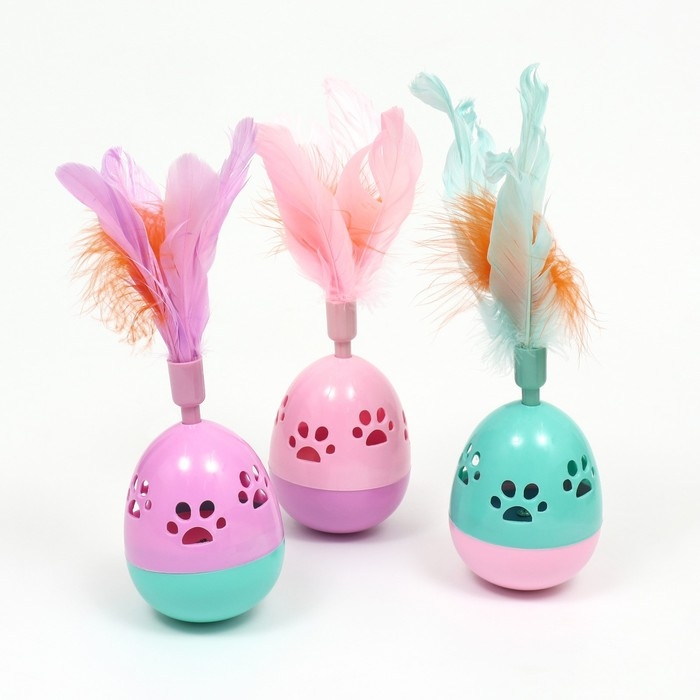 Игрушка-неваляшка "Перьевой фонтан" для кошек, 20 см, микс цветов