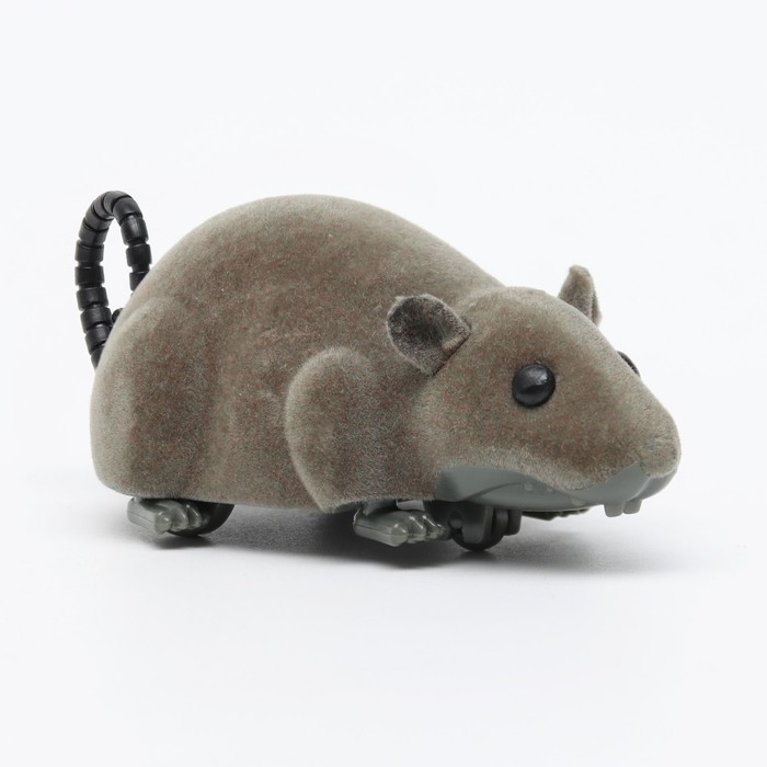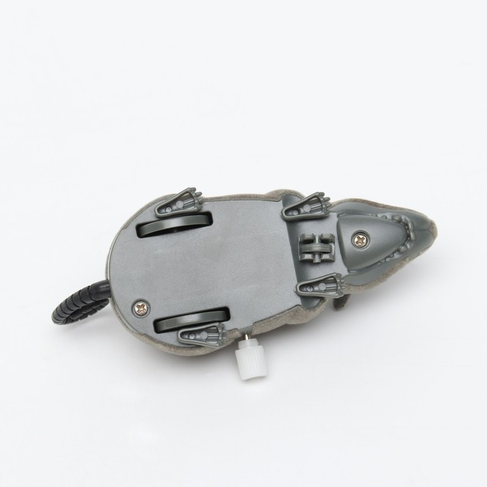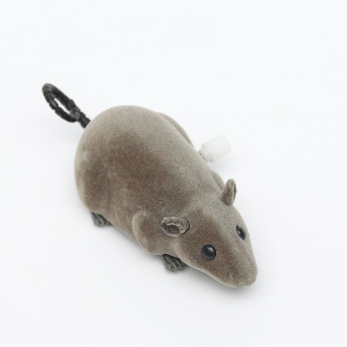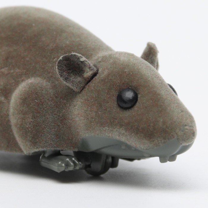 Мышь заводная бархатная, 12 см, серая