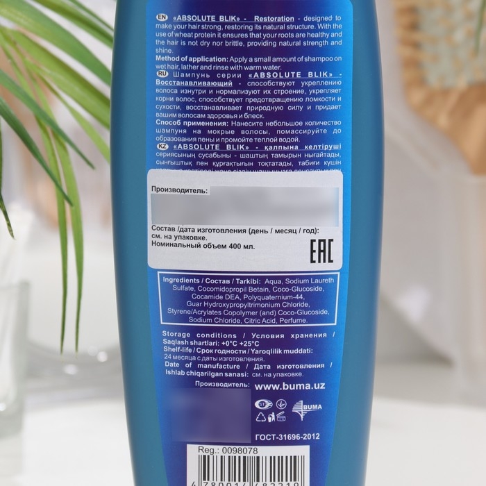Шампунь для волос Absolute Blik восстанавливающий, 400 мл