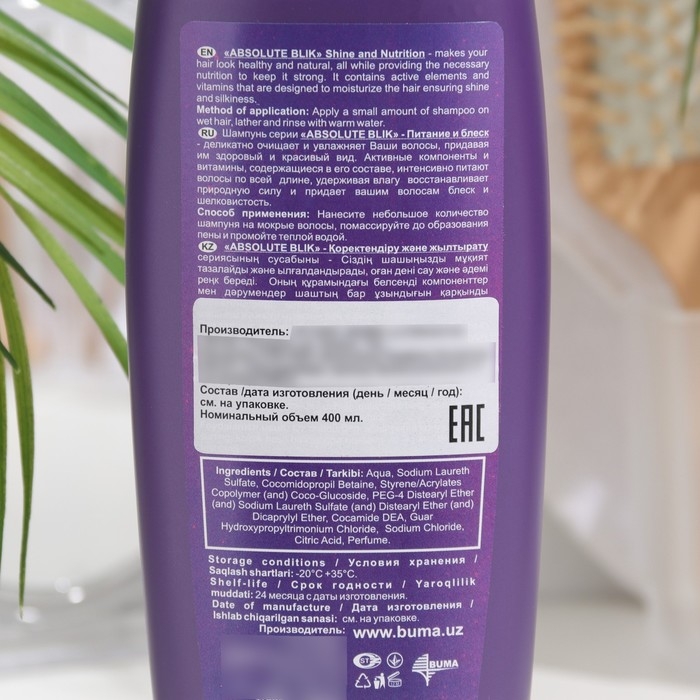 Шампунь для волос Absolute Blik питание и блеск, 400 мл
