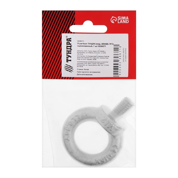 Рым-болт ТУНДРА krep, DIN580, М12, оцинкованный, 1 шт