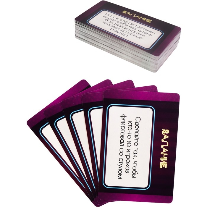 Коммуникативная игра для взрослых. Провоцируйте соперников на неприличные, глупые и неприлично глупые действия, либо выполняйте сумасшедшие наказания в случае неудачи.