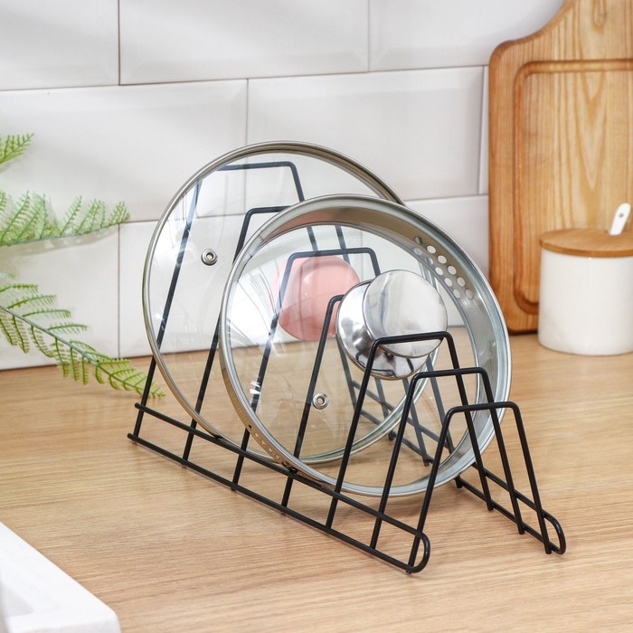 Подставка для крышек на 5 предметов Доляна, 28,5×12,5×16,5 см, цвет чёрный
