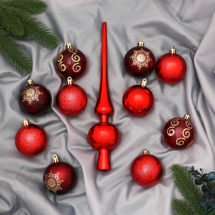 Набор шаров пластик с верхушкой 21 шт "Новогодний" (20 шаров d-6 см, верхушка) красный