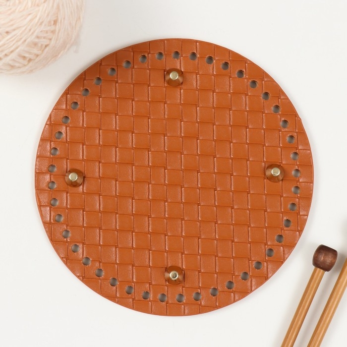Основа для вязаных изделий кожзам "Круглая плетёнка" коричневый 15х15 см