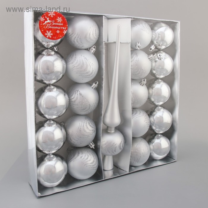 Набор шаров пластик с верхушкой 21 шт "Изгибы" серебро