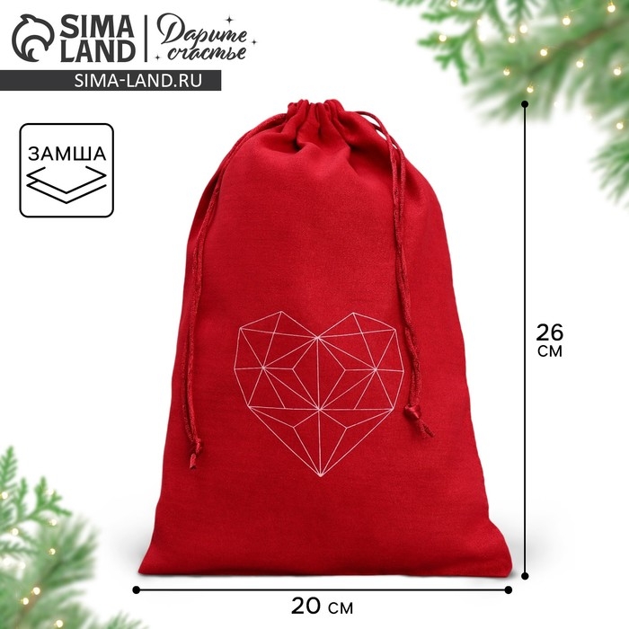 Мешочек подарочный замшевый «Сердце», 20 х 30 см +/- 1.5 см