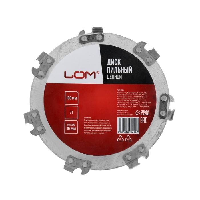 Диск пильный цепной для УШМ ЛОМ, 7Т, 100 х 16 мм