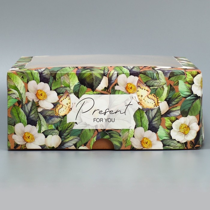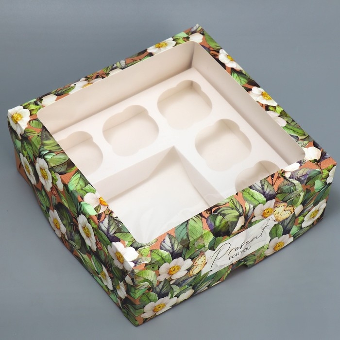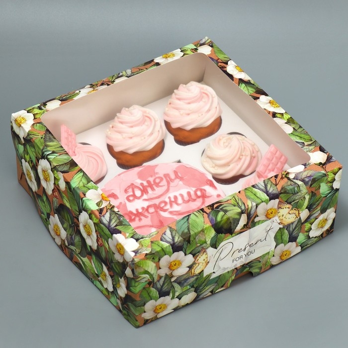 Коробка для капкейков и бенто-торта, кондитерская упаковка «Цветочный паттерн», 25 х 25 х 10 см