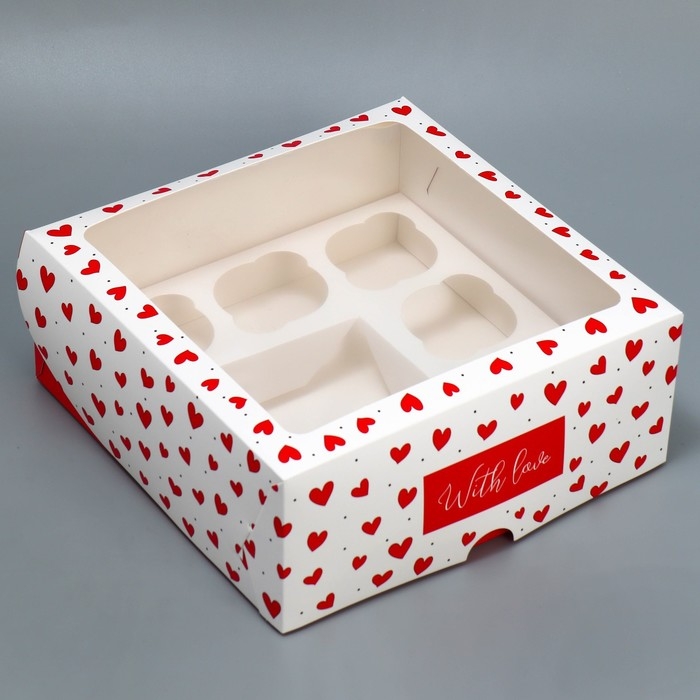 Коробка для капкейков и бенто-торта, кондитерская упаковка «Сердечки», 25 х 25 х 10 см