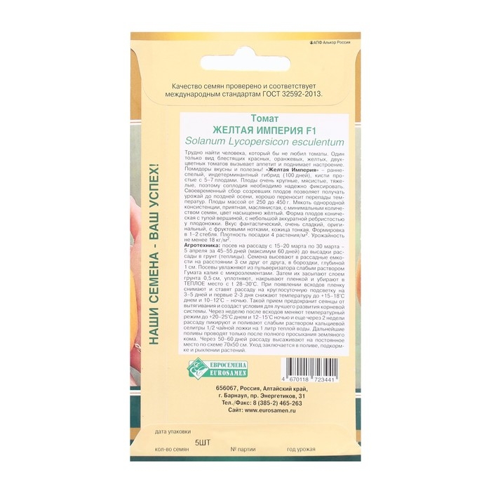 Семена Томат"Алина"F1 5шт* Селекция Агрос