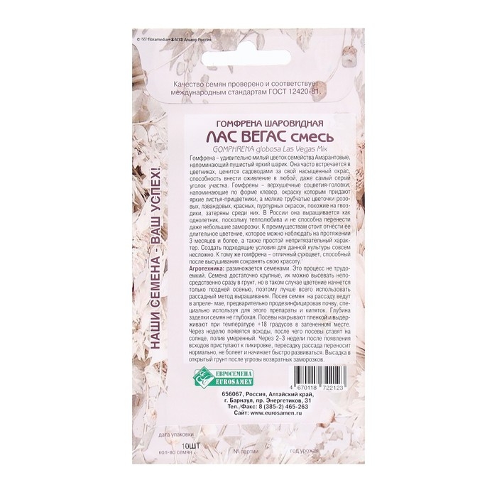 Семена Цветов Гомфрена шаровидная Лас Вегас, смесь, 10 шт