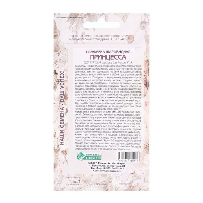Семена Цветов Гомфрена шаровидная Принцесса, 10 шт