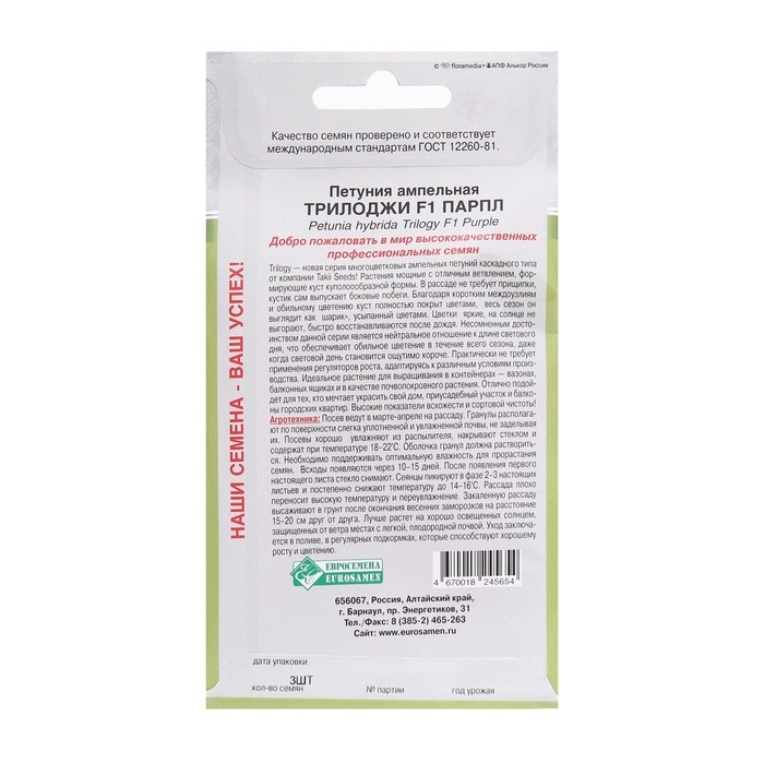 Идеальное растение для выращивания в контейнерах – вазонах, балконных ящиках и в качестве почвопокровного растения. Отлично подойдет для тех, кто мечтает украсить свой дом, приусадебный участок и балконы городских квартир. Высокие показатели всхожести и сортовой чистоты.