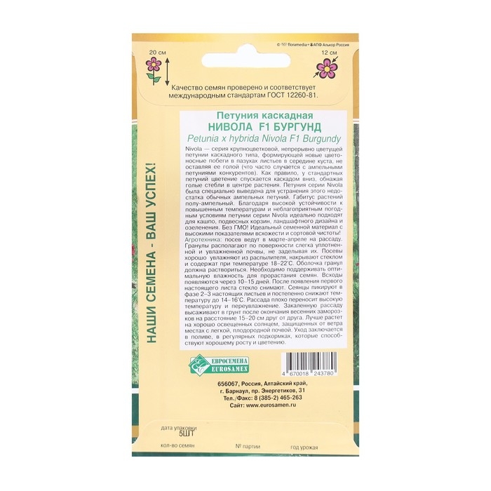Семена цветов Петуния "Бургунди Каскадная" махровая F1, О, цп, 10 шт.