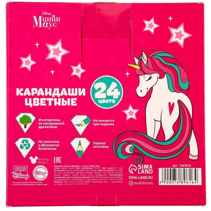 Цветные карандаши, 24 цвета, Минни Маус и Единорог