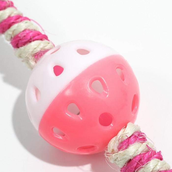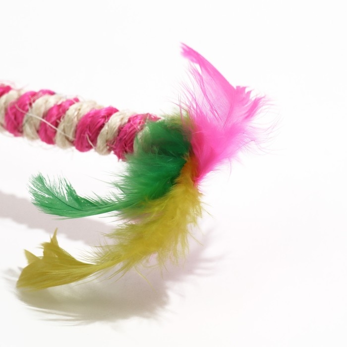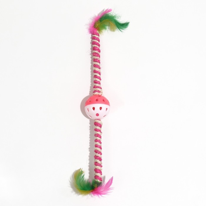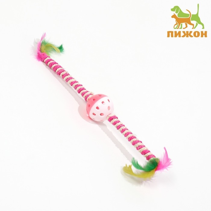 Дразнилка для кошек "Двойной пушок", с шариком и сизалевой обмоткой, 32 см, розовая/белая