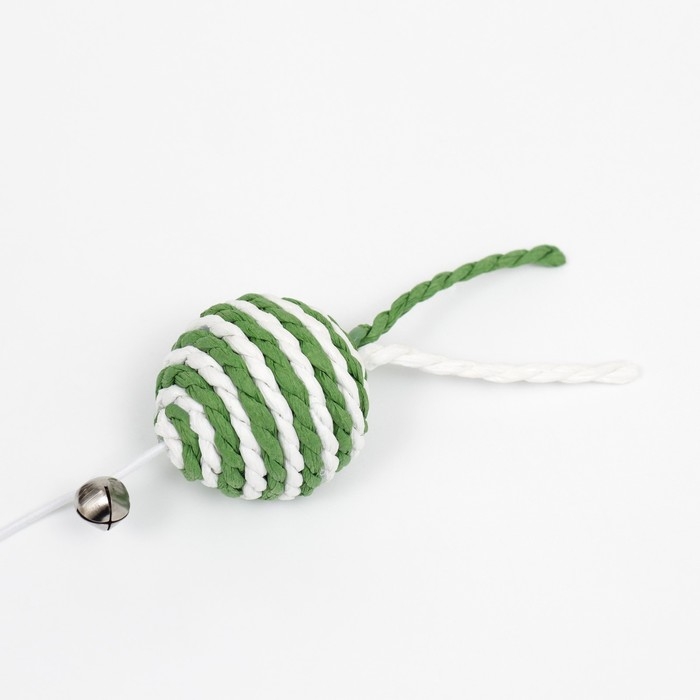 Дразнилка-удочка с шариком на деревянной ручке, зелёная/белая