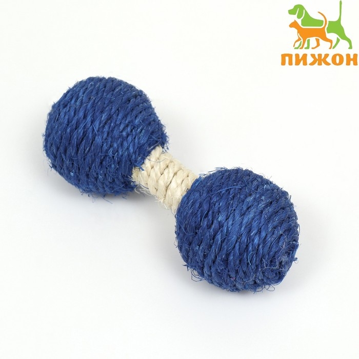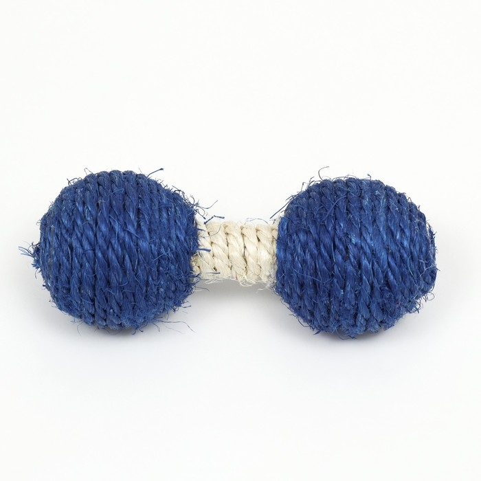 Гантель-погремушка сизалевая, 11,5 см, синяя/белая