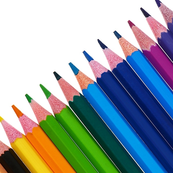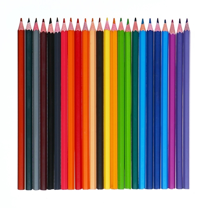 - Набор цветных карандашей, 24 цвета бюджетного ценового уровня, твердый грифель;