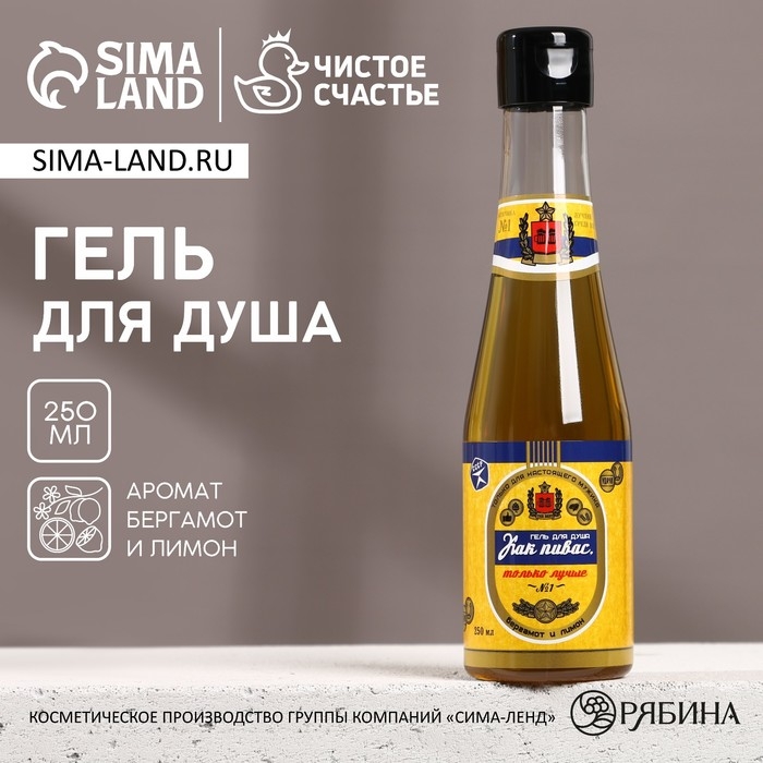 Гель для душа во флаконе пиво «Первому во всём», 250 мл, аромат бергамота и лимона, Новый Год