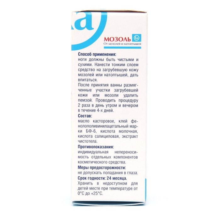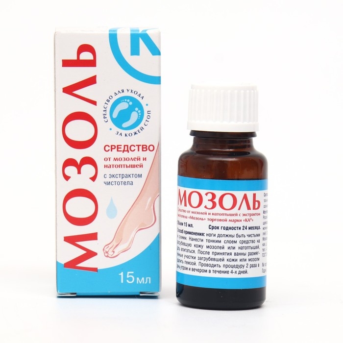 Мозоль Ка средство от мозолей и натоптышей с экстрактом чистотела особо эффективно при удалении поверхностных мозолей и натоптышей. Имеет вязкую консистенцию, легко наносится с помощью аппликатора моментально сохнет.