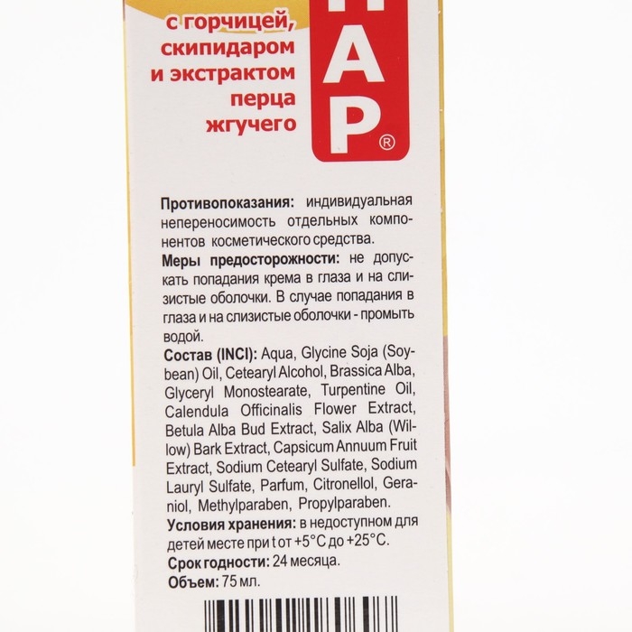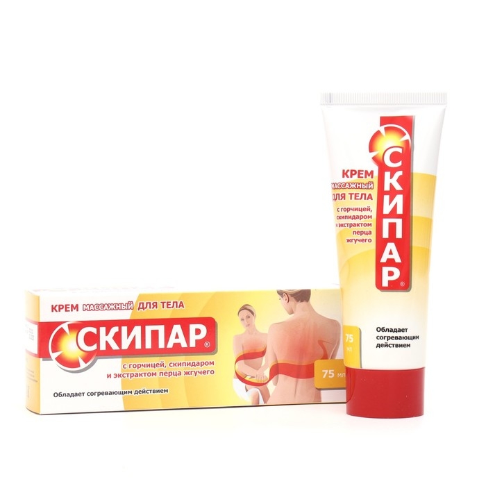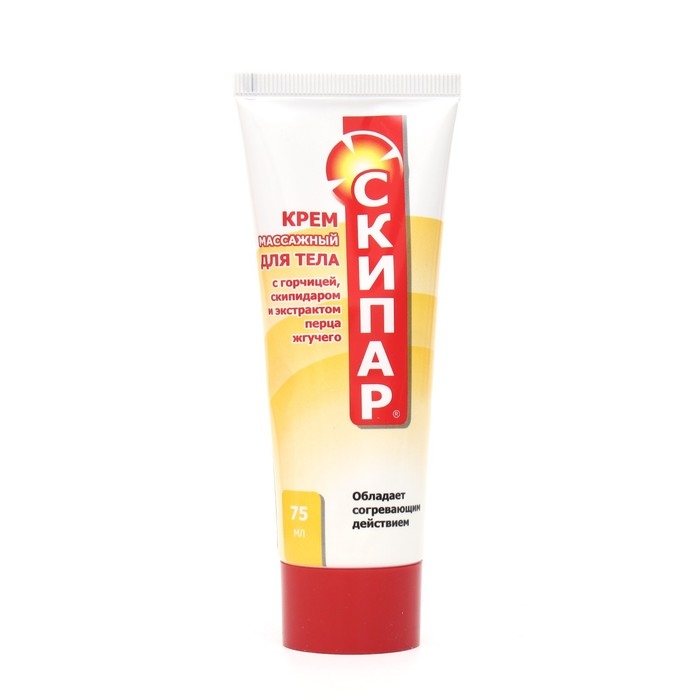 Крем для тела Скипар с горчицей, скипидаром и экстрактом перца жгучего, массажный 75 мл