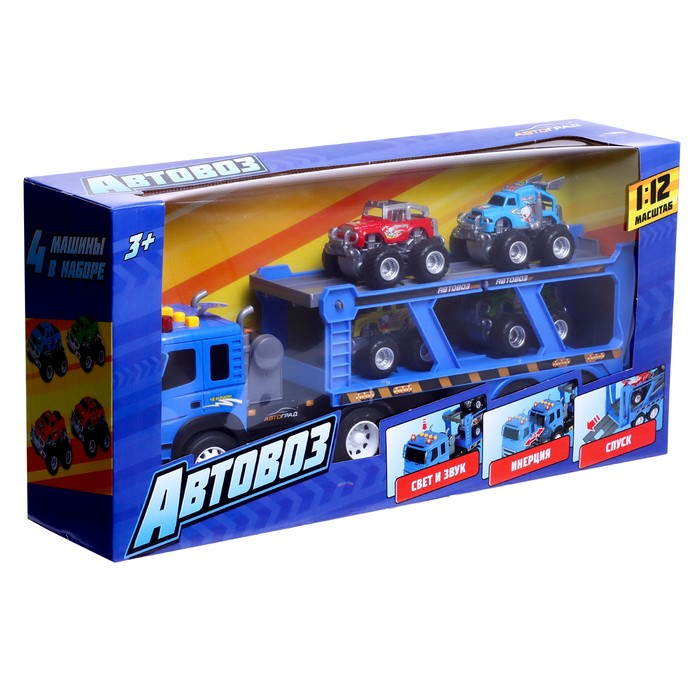 Грузовик инерционный «Автовоз», с 4 джипами, световые эффекты, масштаб 1:12