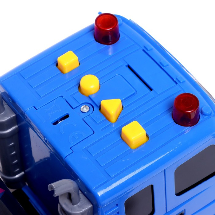 - У автовоза горят сигнальные огни, он издает реалистичные звуки сирены.