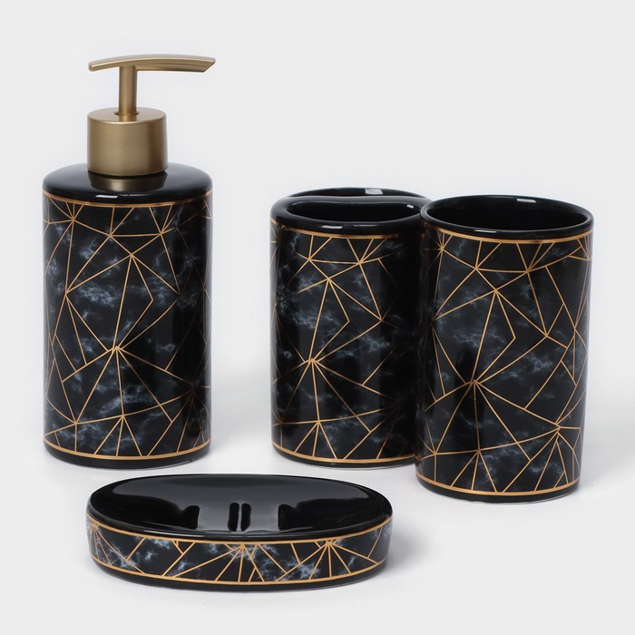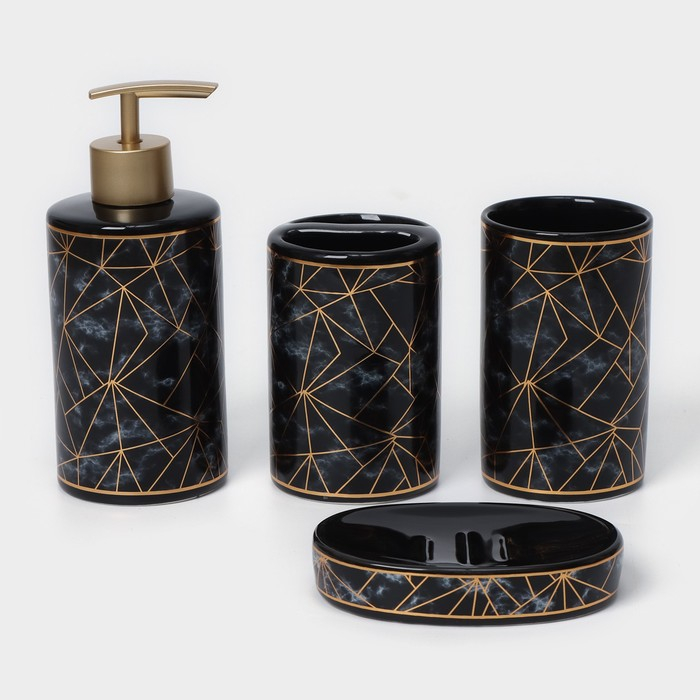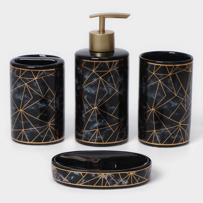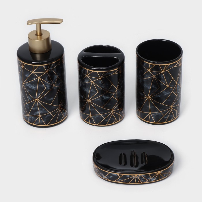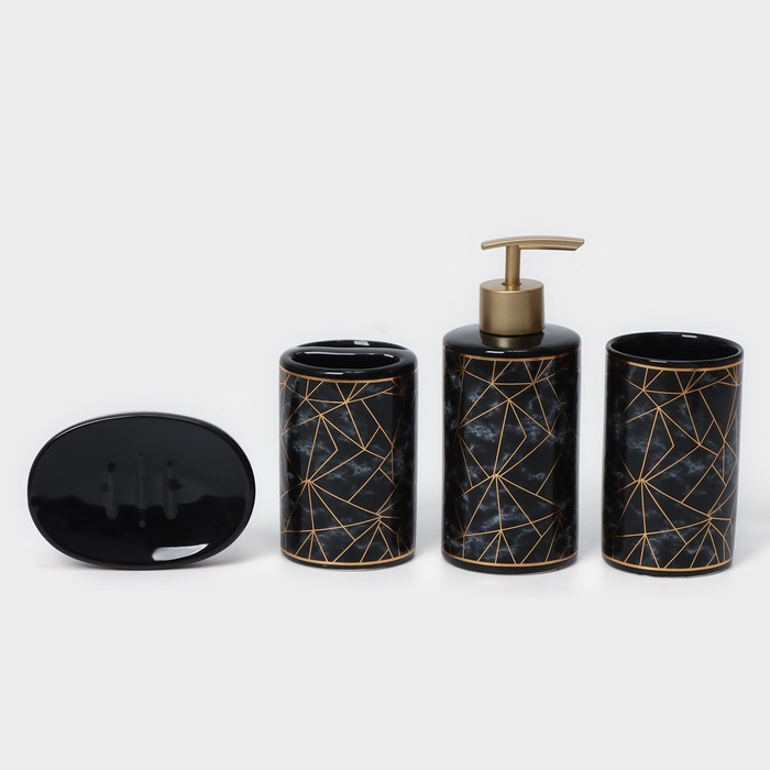 Набор аксессуаров для ванной комнаты «Лофт», 4 предмета (дозатор 250 мл, мыльница, 2 стакана), цвет чёрный