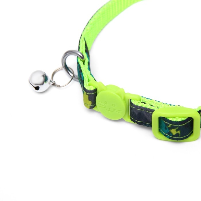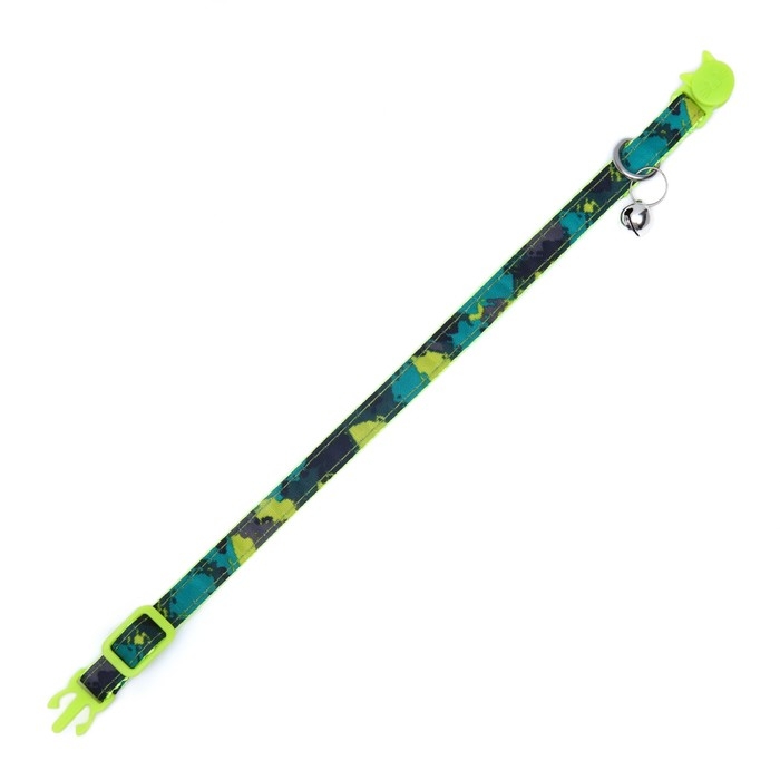 Ошейник кошачий с пряжкой в форме кошки, ширина 1 см, тёмно-зелёный