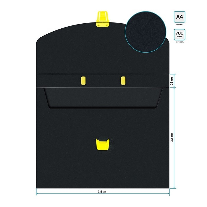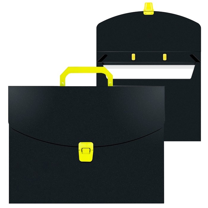 Папка-портфель А4, 700 мкм, 1 отделение, Calligrata, чёрный, неон салатовый