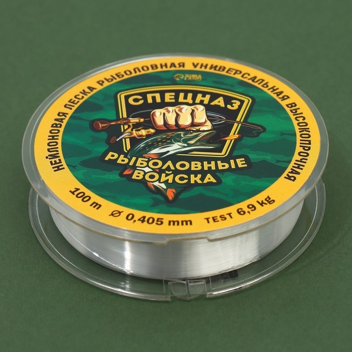 Леска монофильная «Рыболовные войска», 100 м, d=0,405 мм, разрывной вес - 6,9 кг, прозрачная