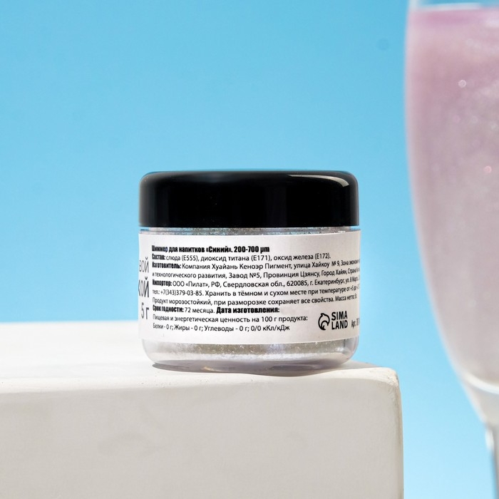 Шиммеры - комплексные пищевые добавки, создающие эффект мерцания. Их можно добавлять в различные напитки, безалкогольные коктейли и кальяны. Смешиваясь с содержимым бокала, шиммер создает удивительное сияние, завораживающее своей глубиной и бесконечностью. В основе шиммера лежат пищевые кондитерские блестки.