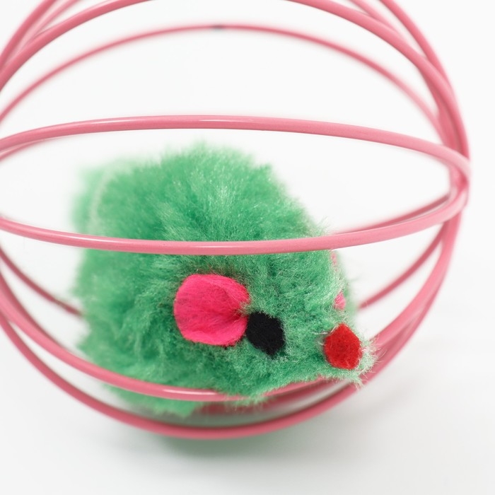 Игрушка "Мышь в шаре", 6 см, розовая/зелёная
