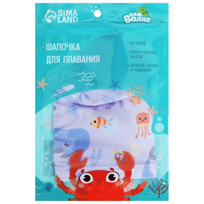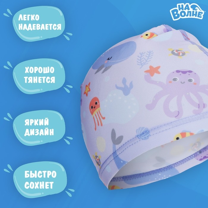 Шапочка для плавания детская «На волне» «Подводный мир», тканевая, обхват 46-52 см