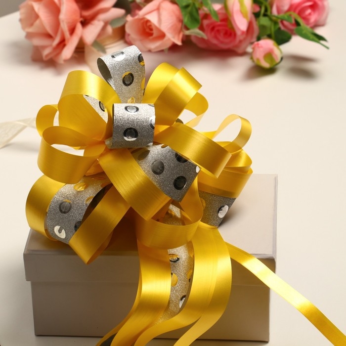 Очень красивый блестящий бант - шар, прекрасно украсит любую подарочную коробку. Поставляется в плоском виде - вам нужно просто потянуть за узкие ленты и роскошный блестящий бант готов! Выбирайте любой нужный цвет! Подойдет на любой подарок мужчине на 23 февраля или подарок любимой женщине на 8 марта. Ребенку, сыну или дочери на день рождения или юбилей.