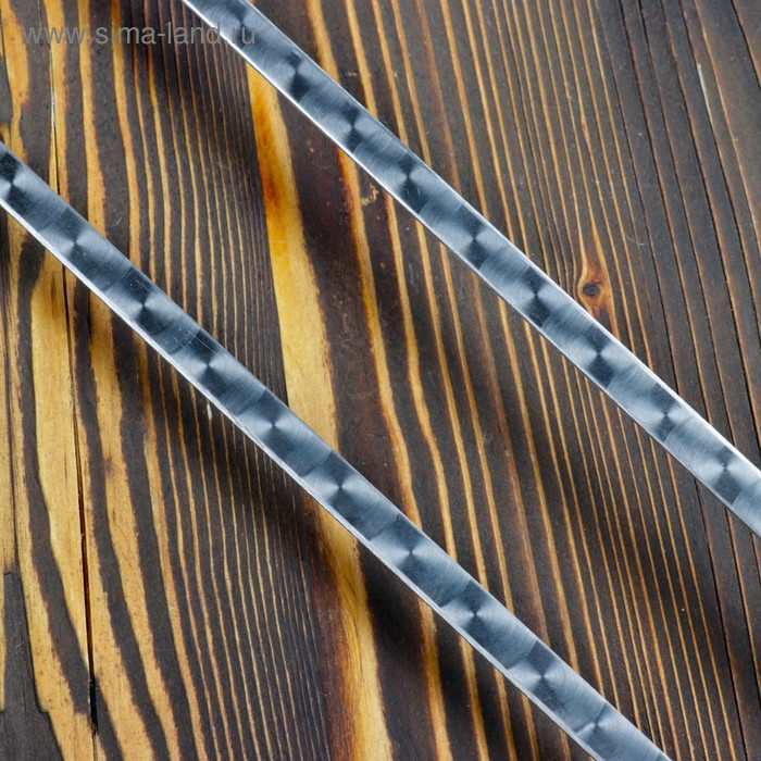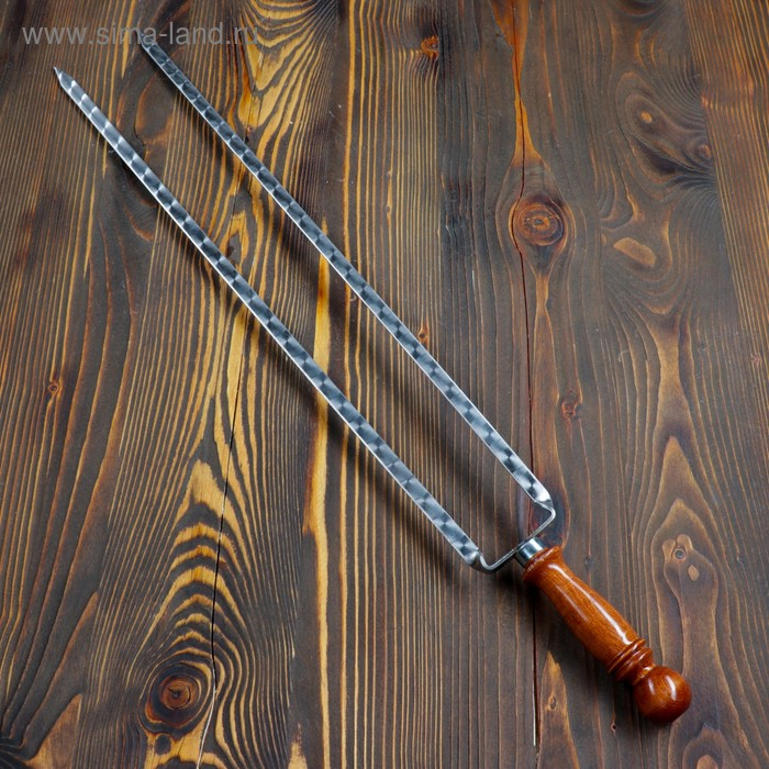 Двойной вилка-шампур с деревянной ручкой, с узором, 60см