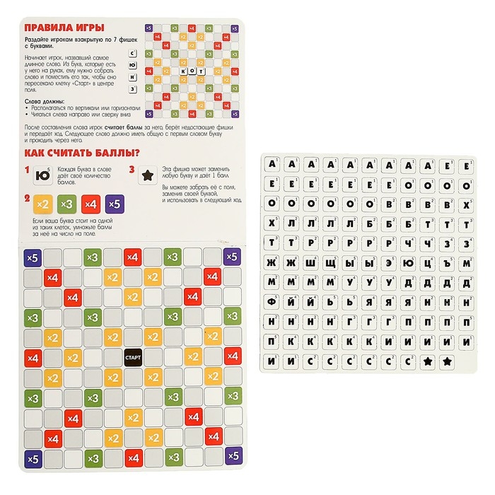 - На каждой фишке с буквой написано, сколько баллов она даёт.