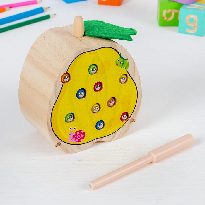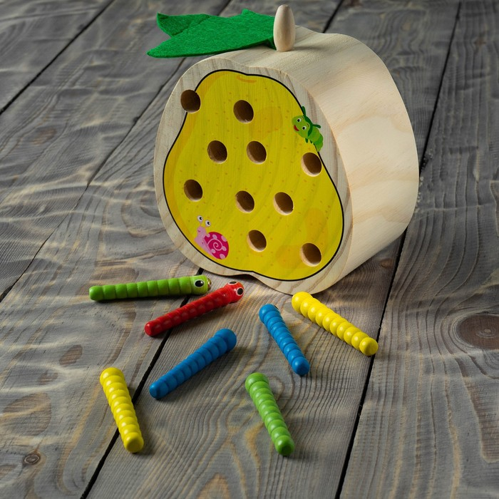 Малышу предстоит поймать всех червячков с помощью магнитной удочки.